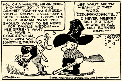 La popularidad de la tira se eleva tanto desde la introducción del animal en la misma que en poco tiempo el título termina por transformarse en Barney Google and Spark Splug. Y así seguirá hasta que en 1934, durante un viaje por las montañas de Kentucky, Barney se encuentra con un viejo borracho que responde al nombre de Snuffy Smith, quien primero añadirá su nombre a un título que quedó renombrado como Barney Google and Snuffy Smith y más tarde, coincidiendo con la muerte de DeBeck en 1942 y su reemplazo por su antiguo asistente Fred Lasswell –antes habían continuado la serie Doc Winner y Joe Musia–, pasará a protagonizar por completo la tira junto a su esposa Lowizie y un nutrido y nuevo plantel de personajes secundarios. La desaparición de Barney de la publicación a mediados de los cincuenta y la aplicación del nuevo y personal estilo de dibujo de Lasswell hacen que la obra pueda dividirse en dos partes claramente diferenciadas entre sí.